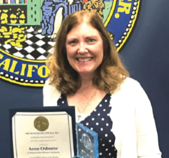 Ms. Osborne’s unwavering diligence and positive attitude extends to all of her work, from the schools the authority serves to the internal projects she works on with coworkers. She takes on each new role with dedication and grace. She was a co-leader on the SB-740 Grant Program project, which involved reviewing hundreds of annual applications and coordinating disbursements to schools throughout California. She also took on the role of a helpful advisor to CSFA’s new manager.